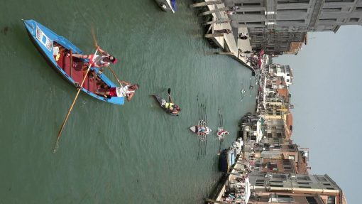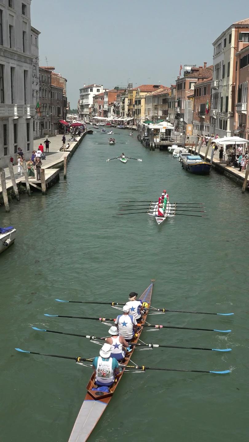 Vogalonga (the annual fun regatta) boats on the Canale di Cannaregio. Venice is UNESCO World Cultural Heritage Site.