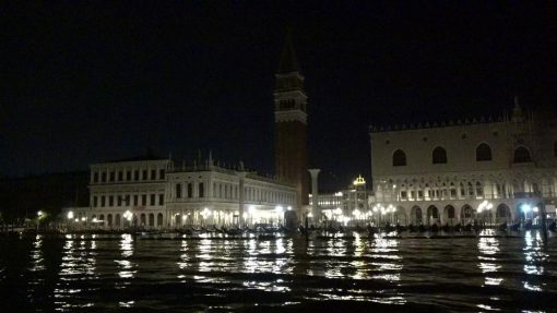 Piazzetta San Marco and the Campanile, seen from the boat. Venice is UNESCO World Cultural Heritage Site.