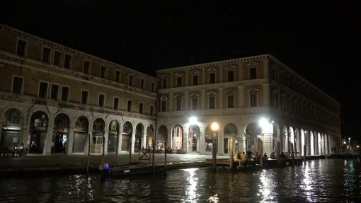 Rialto Market and Ponte Rialto, seen from the boat. Venice is UNESCO World Cultural Heritage Site.