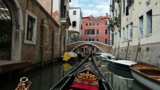 In a traditional gondola on Rio di San Boldo. Venice is UNESCO World Cultural Heritage Site.
