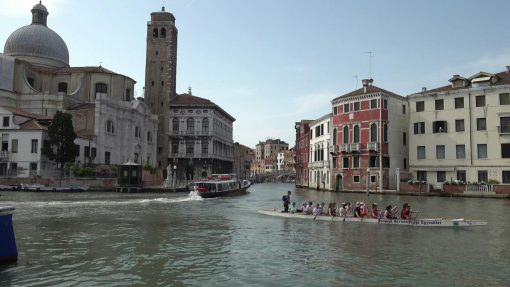 The intersection of Canal Grande and Canale di Cannaregio, east of the railway station Santa Lucia. Santi Geremia e Lucia on the left hand side. Venice is UNESCO World Cultural Heritage Site.