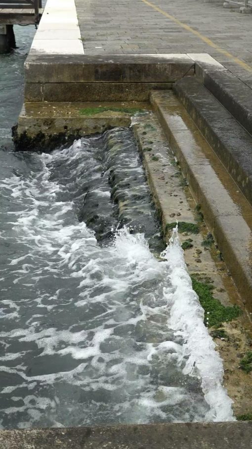 Steps from the sidewalk down to the laguna. Venice is UNESCO World Cultural Heritage Site.