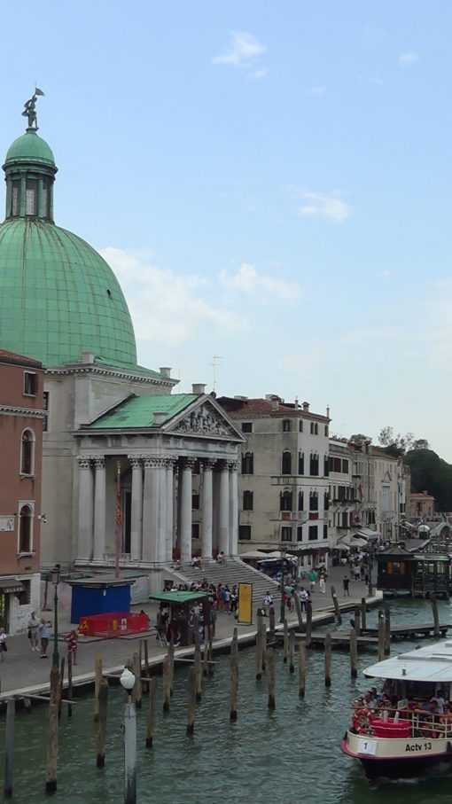 Canal Grande, seen from the Ponte degli Scalzi (Bridge of the Barefoot (monks)), looking west. On the left hand side San Simeone Piccolo.
