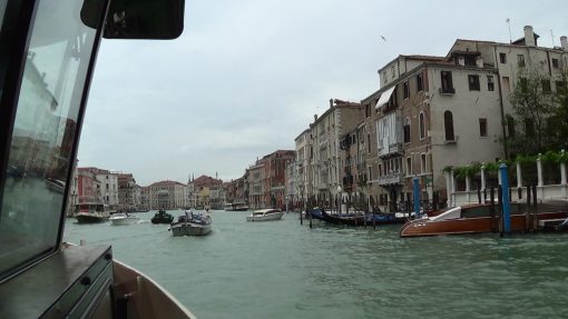 Canal Grande, seen from aboard a Vaporetto (the public transport boat). This is southwards from the station San Silvestro to Sant Angelo. Buildings, in the order of appearance: Palazzo Businello, Palazzo Papadopoli, Palazzo Dona, Palazzo Grimani. Venezia is UNESCO World Cultural Heritage Site.