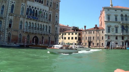 Canal Grande, seen from aboard a Vaporetto (the public transport boat). This is northwards from the station San Samuele to San Toma. Buildings, in the order of appearance: Palazzo Rezzonico, Palazzo Nani, Palazzo Giustinian, Ca´Foscari, Palazzo Balbi, Palazzo Civran-Grimani. Venezia is UNESCO World Cultural Heritage Site.