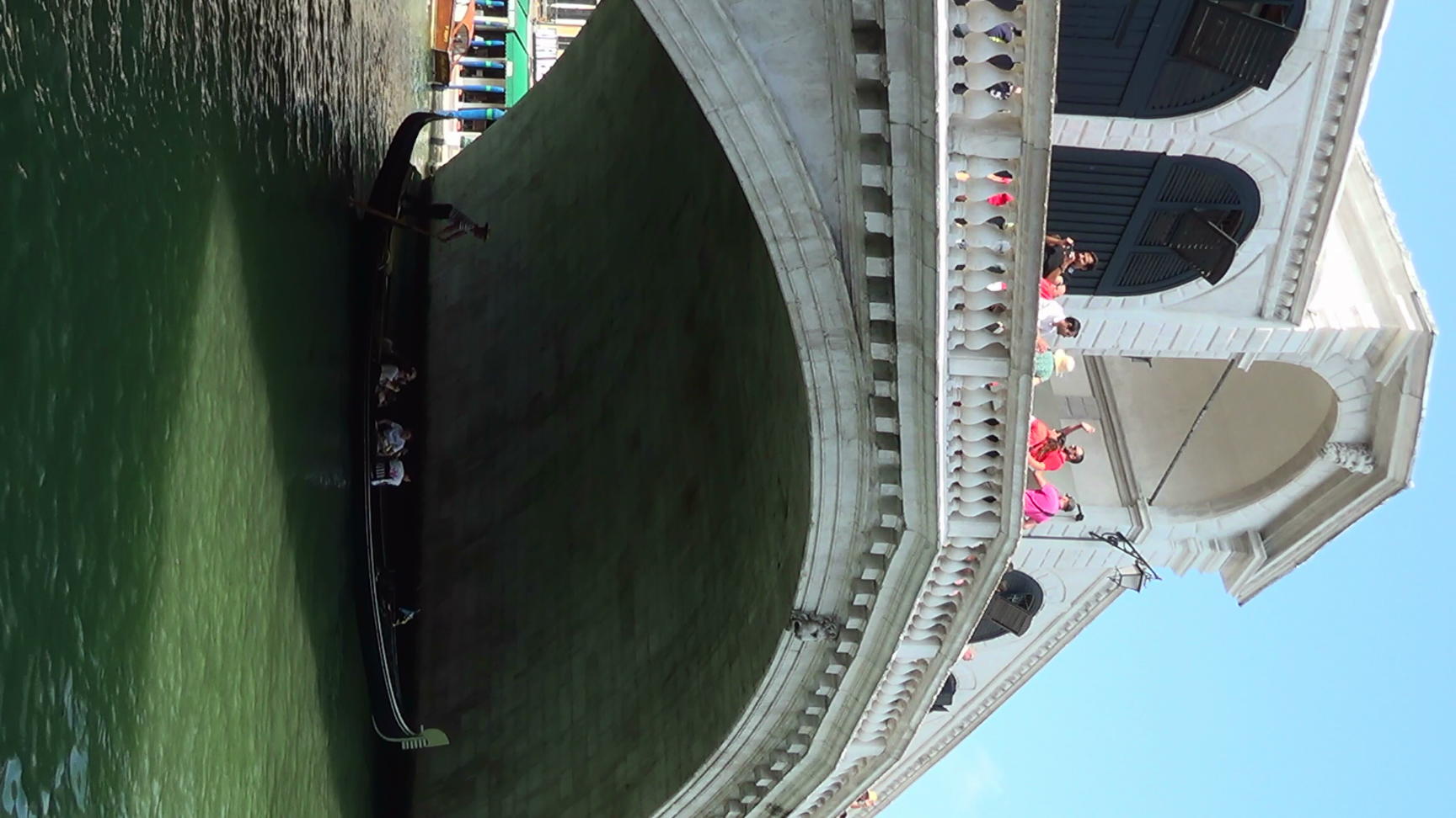 Ponte Rialto (Rialto Bridge), seen from the Fondamenta del Buso (right next to the restaurant). Venice is UNESCO World Cultural Heritage Site. Upright Size.