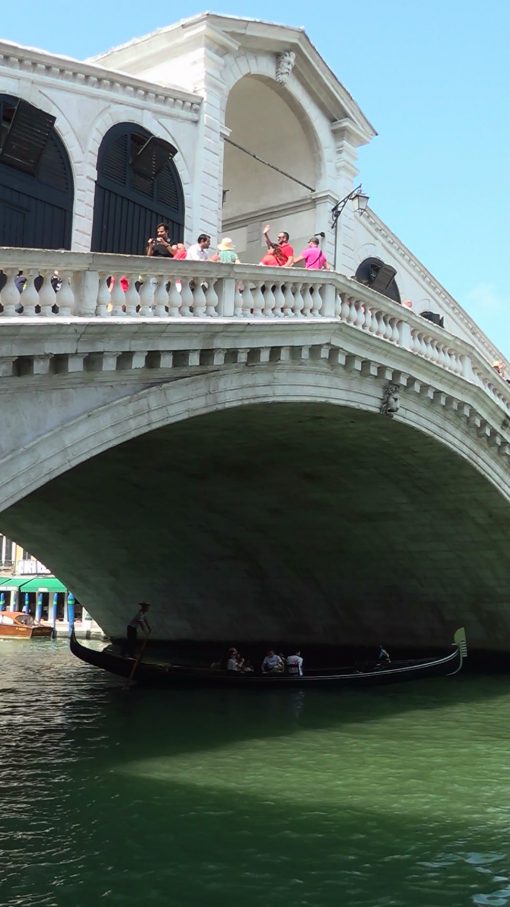Venecia, Italia. Ponte Rialto (Puente de Rialto), visto desde la Fondamenta del Buso (justo al lado del restaurante). Venecia es Patrimonio de la Humanidad por la UNESCO. Formato vertical.