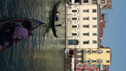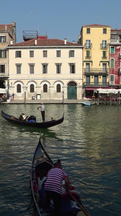 Венеция, Италия. Гондолы на Гранд-канал недалеко от Понте Риальто, вид с Рива-дель-Карбон. Венеция является объектом Всемирного культурного наследия ЮНЕСКО. Вертикальный размер.