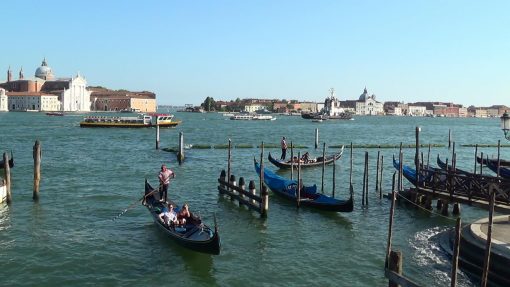 Cinema movies in Venice: Gondola chase in 007 Moonraker. Elise Clifton-Ward meets Frank Tupelo in The Tourist. Collapsing Palazzo in 007 Casino Royale. The Talented Mr. Ripley. Death in Venice. The Italian Job. 007 From Russia with Love.