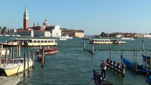 Cinema movies in Venice: Gondola chase in 007 Moonraker. Elise Clifton-Ward meets Frank Tupelo in The Tourist. Collapsing Palazzo in 007 Casino Royale. The Talented Mr. Ripley. Death in Venice. The Italian Job. 007 From Russia with Love.