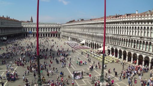 Piazza San Marco (St. Mark´s Square), seen from the Basilica di San Marco. UNESCO World Cultural Heritage Site. This is a panorama from the right to the left.