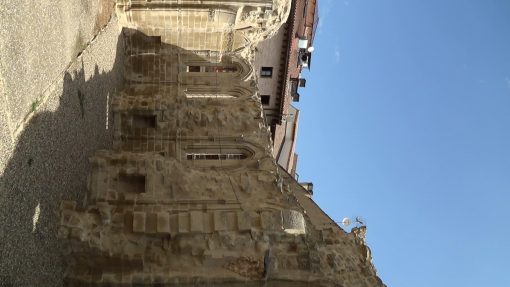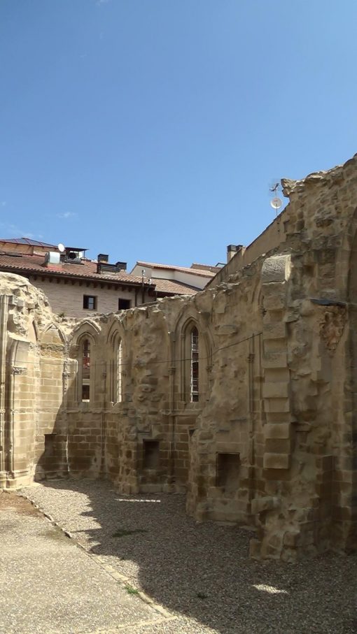 On the Camino de Santiago (St. James Trail). Viana is located between Los Arcos (Navarra) and Logrono (La Rioja). This is the ruin of the Iglesia de San Pedro, locals prepare for an event. The Camino de Santiago is UNESCO World Cultural Heritage.