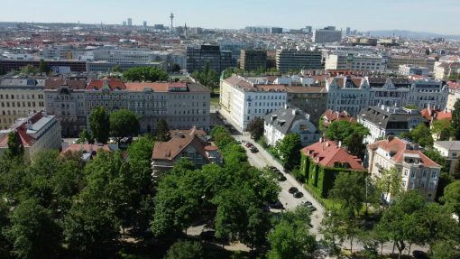 Town houses near Prater, in the second district. The city passes from the left to the right.