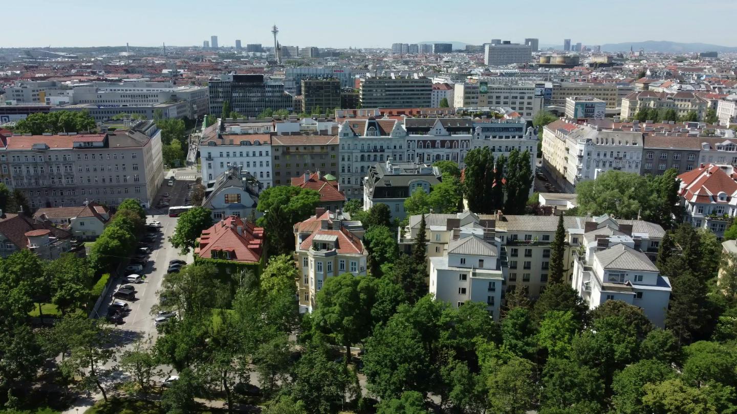 Town houses near Prater, in the second district. The city passes from the right to the left.