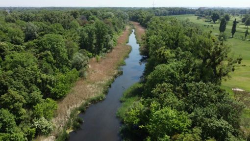 Lusthauswasser, a pond in the Prater forest. This is a flight backward.