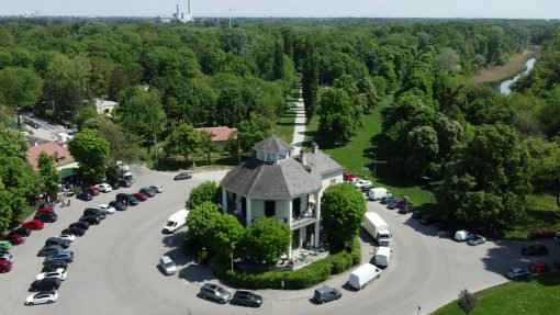 Lusthaus, the former imperial hunting lodge in the Wiener Prater. The scenery passes from the left to the right.