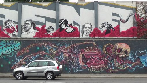 Graffito on the walls of Arena, the venue in the former slaughterhouse area.