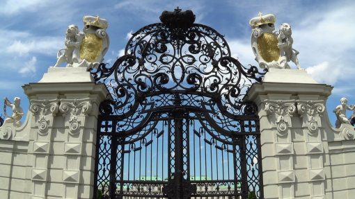 At Belvedere Palace, looking through the smithery of the main gate. The cloud movemement is accelerated. Belvedere is UNESCO World Cultural Heritage Site.