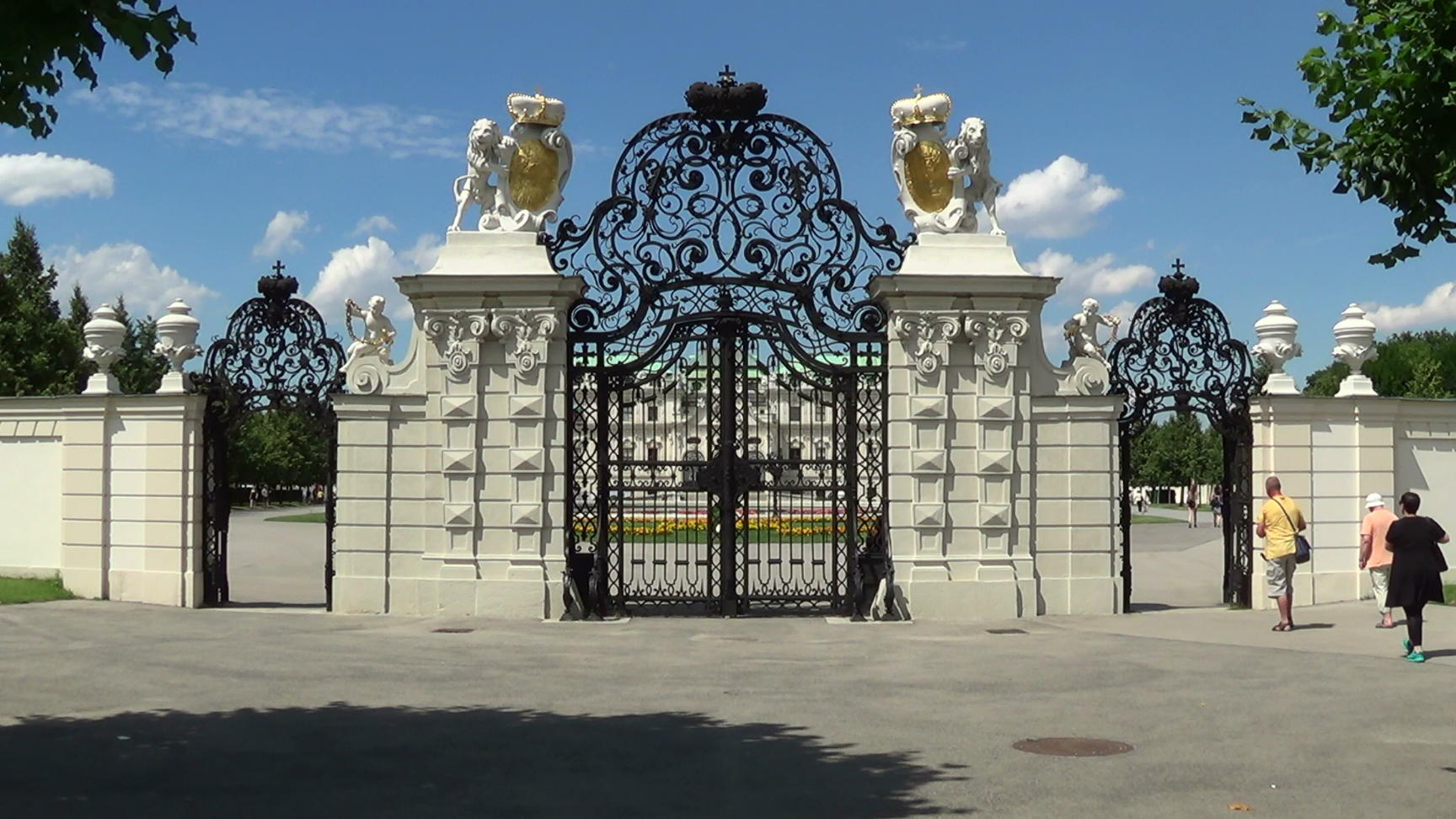 At the main gate of the Belvedere Palace. UNESCO World Cultural Heritage Site.