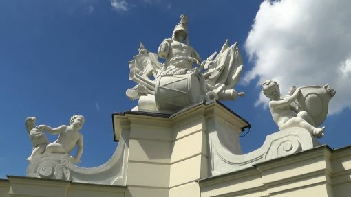 Decoration on the walls of the Belvedere Palace. The cloud movemement is slightly accelerated. Belvedere is UNESCO World Cultural Heritage Site. Please note, there is a mini fibre fluttering in the left part of the frame, I regret.