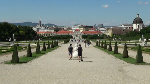 Belvedere, a view from the palace over the park and the city skyline beyond. Belvedere is UNESCO World Cultural Heritage Site.