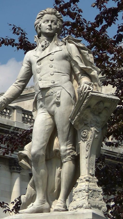 The Statue of Wolfgang Amadeus Mozart at Burggarten. Burggarten is the former court garden of the imperial family, located in the back of the Hofburg complex. UNESCO World Cultural Heritage Site.