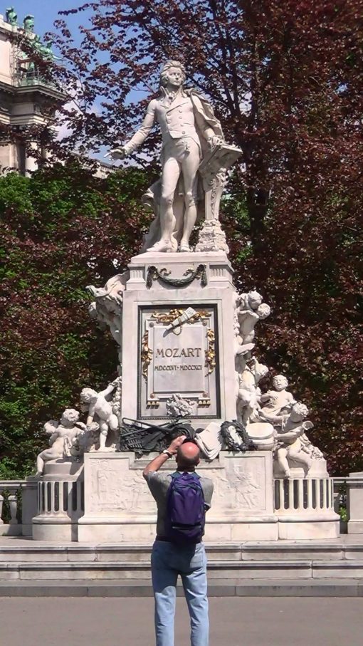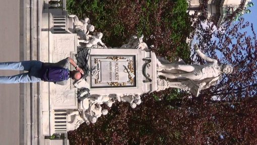 The Statue of Wolfgang Amadeus Mozart at Burggarten. Burggarten is the former court garden of the imperial family, located in the back of the Hofburg complex. UNESCO World Cultural Heritage Site.