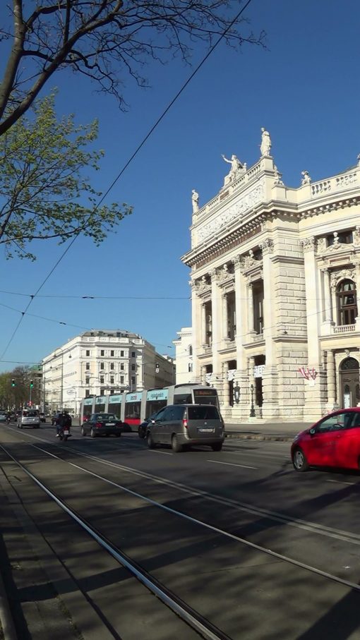 Burgtheater in the old town, seen from across Ring Street. The Innere Stadt (old town) of Vienna is UNESCO World Cultural Heritage Site.