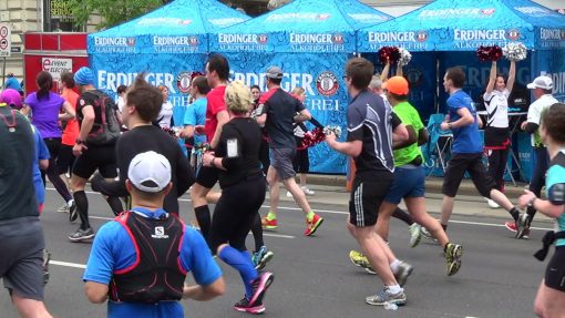 On Ring Street, dancers and acrobats cheer the runners of the Vienna City Marathon.