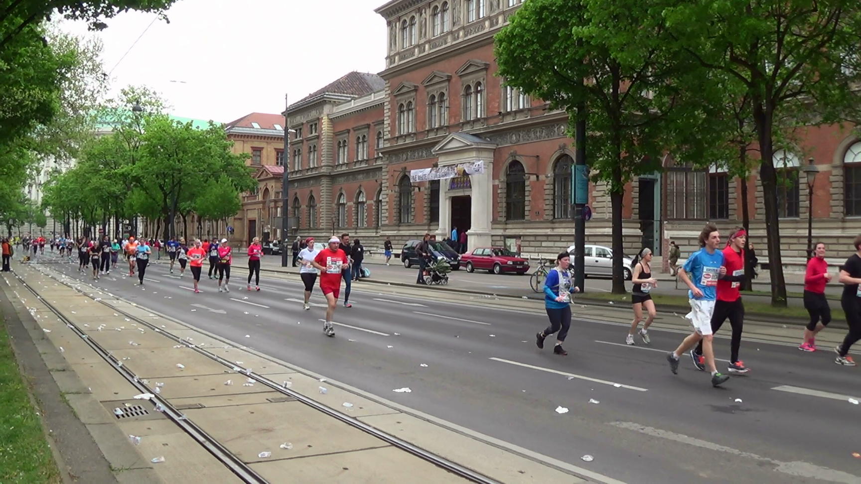Runners on Ring Street (the alley that encircles the Old Town) pass the MAK Museum für angewandte Kunst (Museum for Applied Arts / Contemporary Arts).