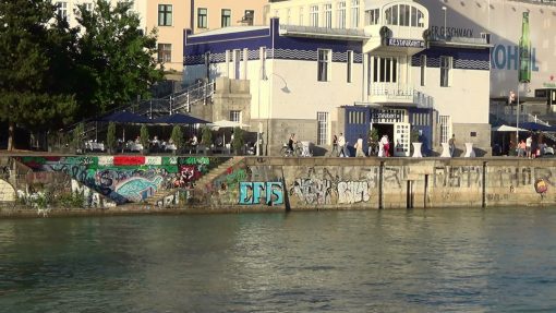 Down at Donaukanal near the Old Town. The white/blue house is “Schützenhaus”. This is a zoom out.