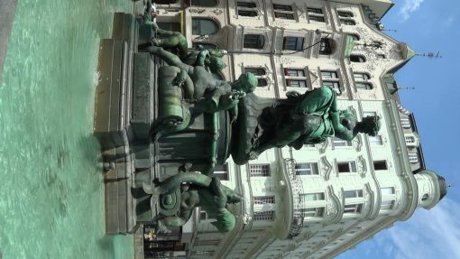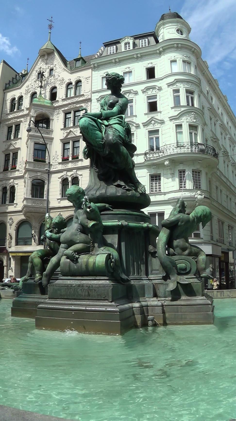 Innere Stadt, Donnerbrunnen (Donner Fountain). Actually, the real name is Providentiabrunnen (Providencia Fountain), but locals named it after the creator, Raphael Donner. The old town of Vienna is UNESCO World Cultural Heritage Site. This is a close up, showing the centerpiece. Upright Size.