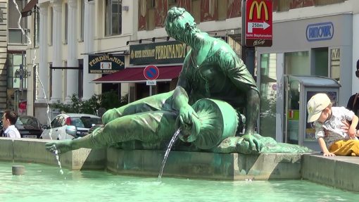 First district, Donner Fountain (Donnerbrunnen) alias Providencia Fountain (Providentiabrunnen). Locals named it after the creator, Raphael Donner. This is a close up, showing one of the figures in detail. The Innere Stadt of Vienna is UNESCO World Cultural Heritage Site.