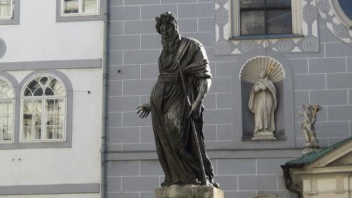 Innere Stadt, on Franziskanerplatz (Franciscans Square). Mind the bellsound from the Franziskanerkirche (Franciscan Church) behind the statue on the fountain.