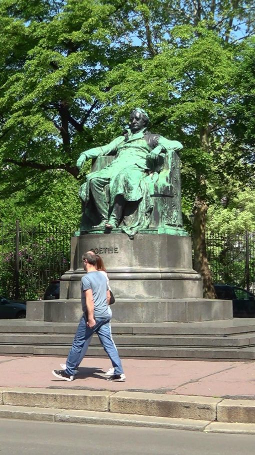 Innere Stadt on Ring Street, the Johann Wolfgang von Goethe statue. A German poet and scientist. The Old Town of Vienna is UNESCO World Cultural Heritage Site.