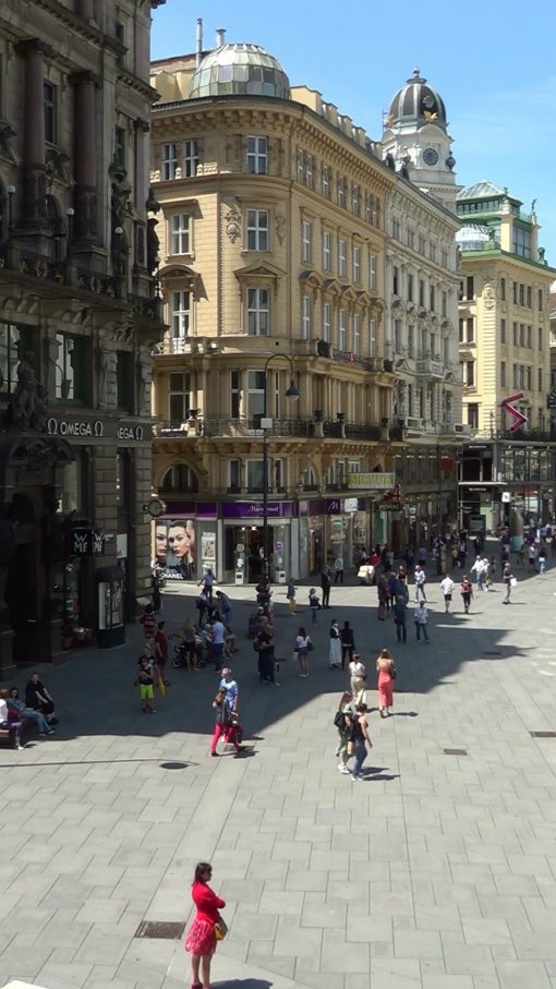 Innere Stadt (Old Town), the pedestrian zone on Graben. The old town of Vienna is UNESCO World Cultural Heritage Site. Upright Size.