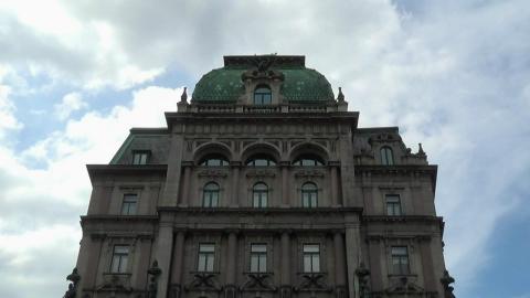 Clouds over the Palais Equitable in the Innere Stadt. The cloud movement is slightly accelerated. The Innere Stadt (Old Town) of Vienna is UNESCO World Cultural Heritage Site.