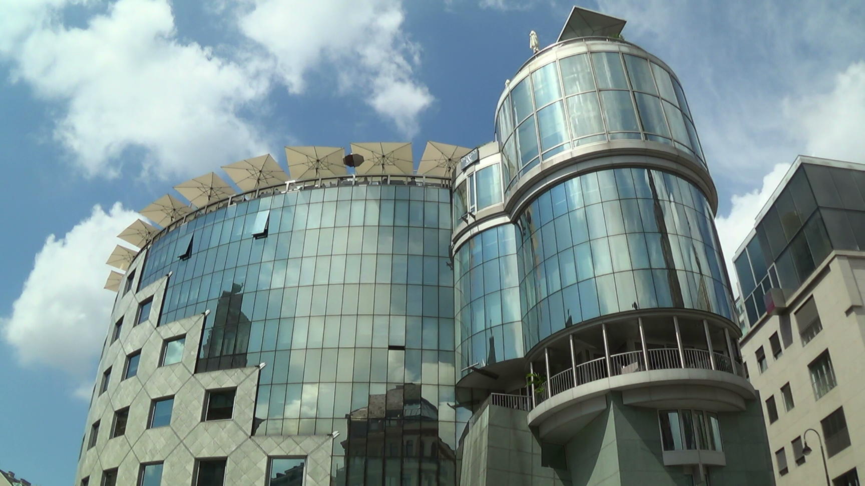 Clouds over the Haas Haus, opposite the St. Stephens Cathedral. The cloud movement is accelerated. The Innere Stadt (Old Town) of Vienna is UNESCO World Cultural Heritage Site.