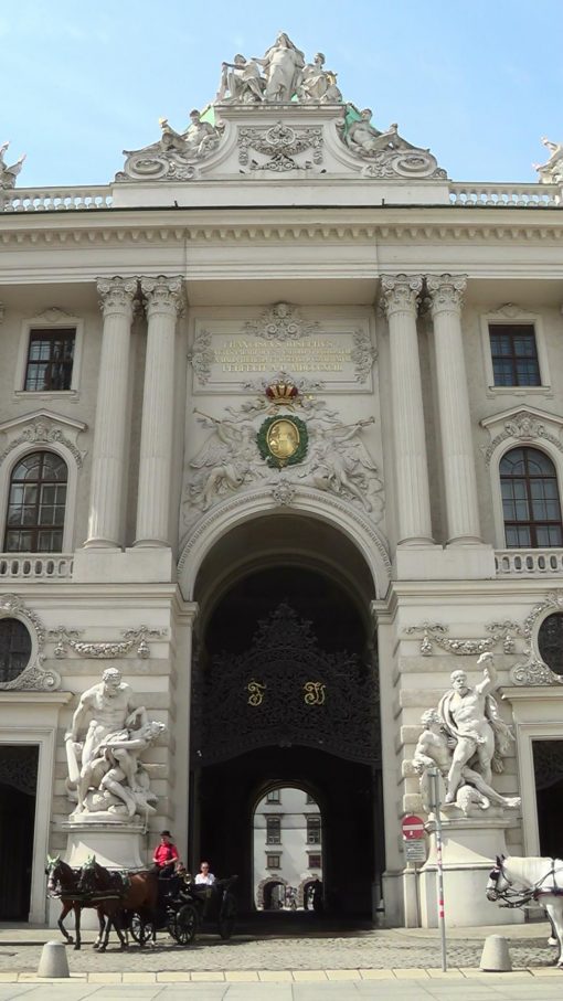 On Michaelerplatz in the old town, the main gate to the Hofburg palace. The Old Town of Vienna is UNESCO World Cultural Heritage Site.
