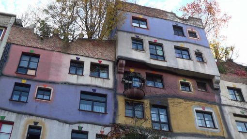 The colourful urban apartment building created by the austrian artist Friedensreich Hundertwasser and the architect Josef Krawina. Hundertwassers motto: The straight line is none of gods inventions.