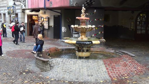The colourful urban apartment building created by the austrian artist Friedensreich Hundertwasser and the architect Josef Krawina. Hndertwassers motto: The straight line is none of gods inventions.