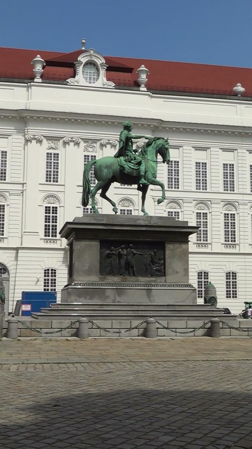 Harry LIme (Orson Welles) lives in the house on the right hand side, the Palais Pallavicini (Pallavicini Palace), in the cinema movie “The Third Man“, 1949. The Emperor Josef II statue is the place where Harry Lime was laid down after his accident. Visit the Third Man Museum in Vienna.