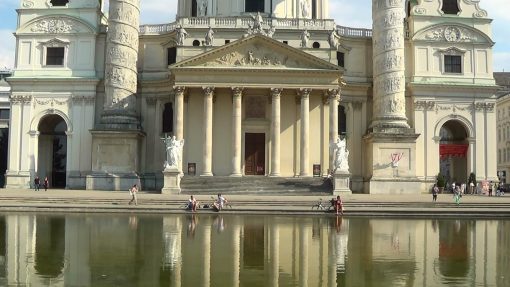 Karlskirche (St. Charles Church), seen over the pond. Karlskirche is UNESCO World Cultural Heritage Site.