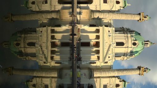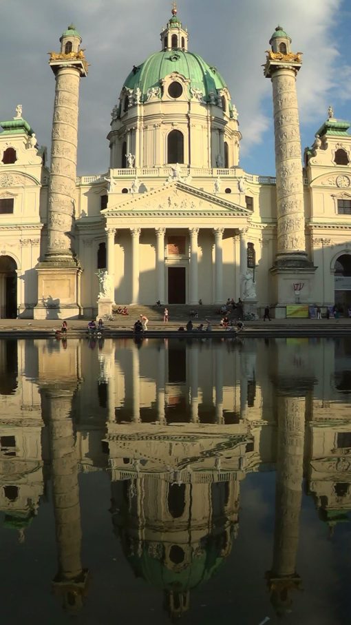 Karlskirche (St. Charles Church), in the 4th district, seen over the pond. Karlskirche is UNESCO World Cultural Heritage Site.