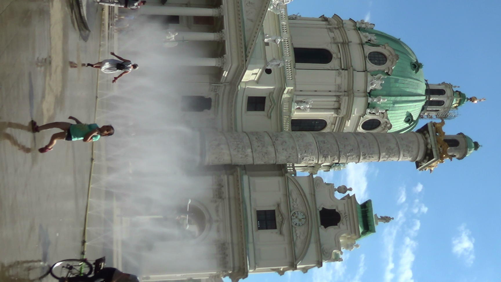 On a hot summer day, the municipality of Vienna provides the people with makeshift showers. A hydrant, a hose, a perforated sprayer – done!