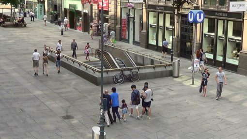 A summer morning in the Innere Stadt. This is at the corner Kärntnerstraße / Stephansplatz in the pedestrian zone. The Innere Stadt (old town) of Vienna is UNESCO World Cultural Heritage Site.