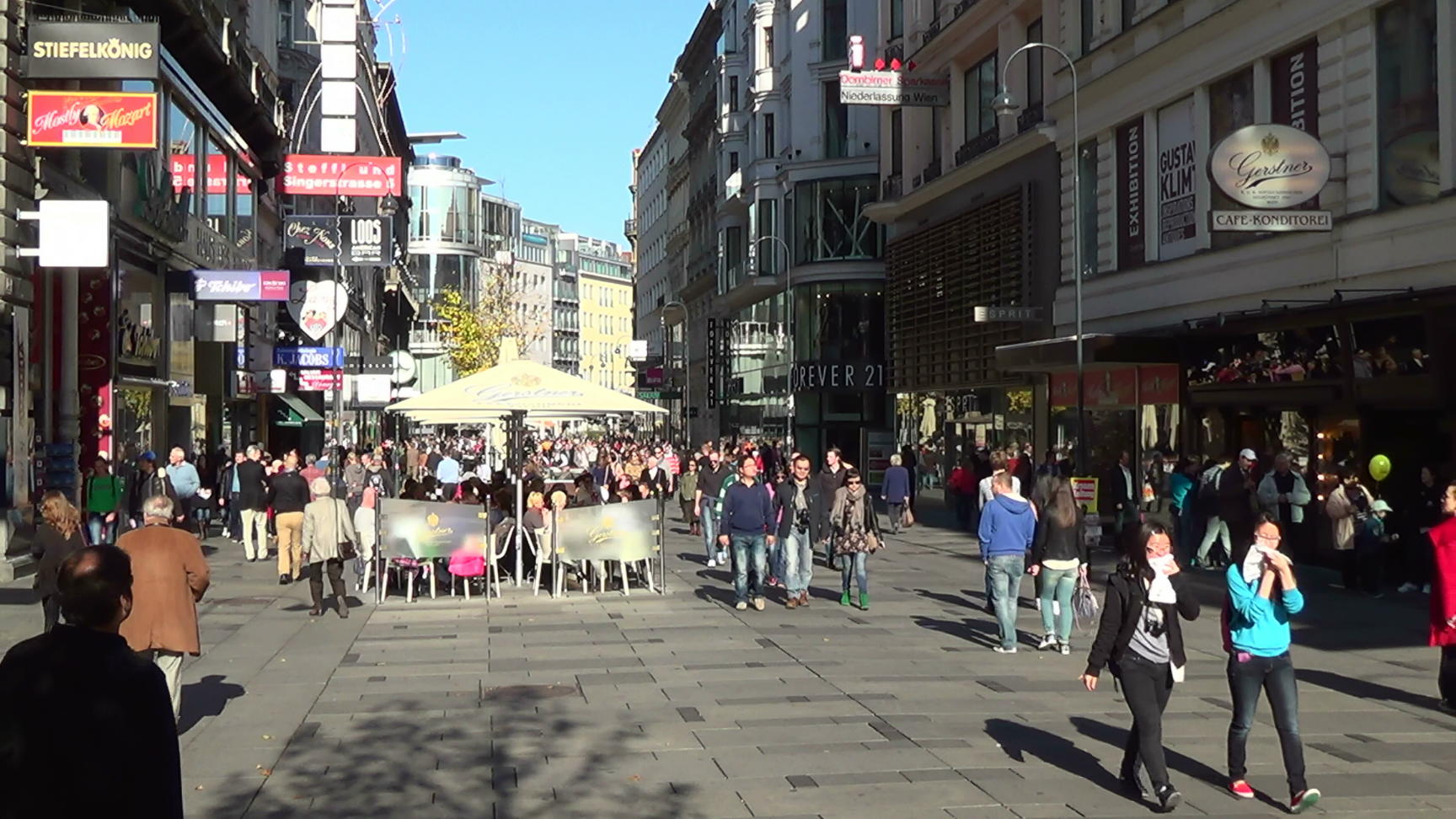 Kärntnerstraße, the traditional shopping mile in the Old Town. The Old Town (“Innere Stadt”) of Vienna is UNESCO World Cultural Heritage Site.