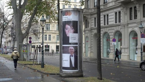 The typical Viennese Litfass columns (Columns with announcements inside. Rotating core, illuminated by night).