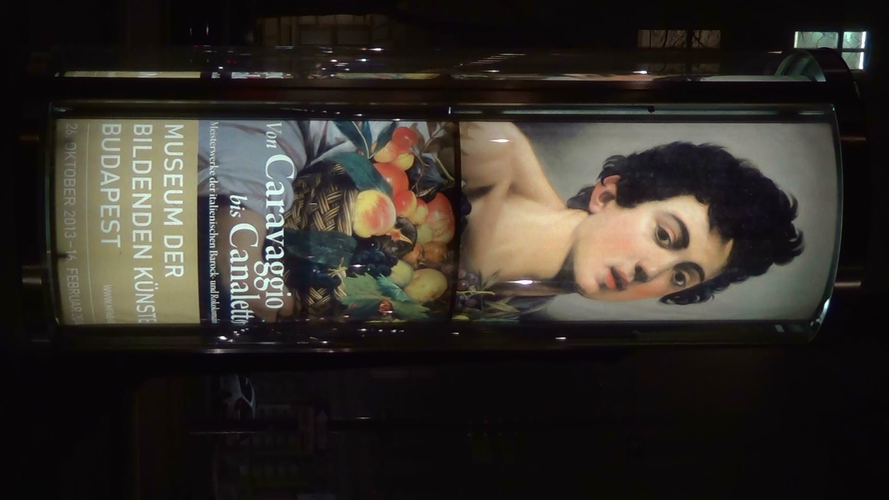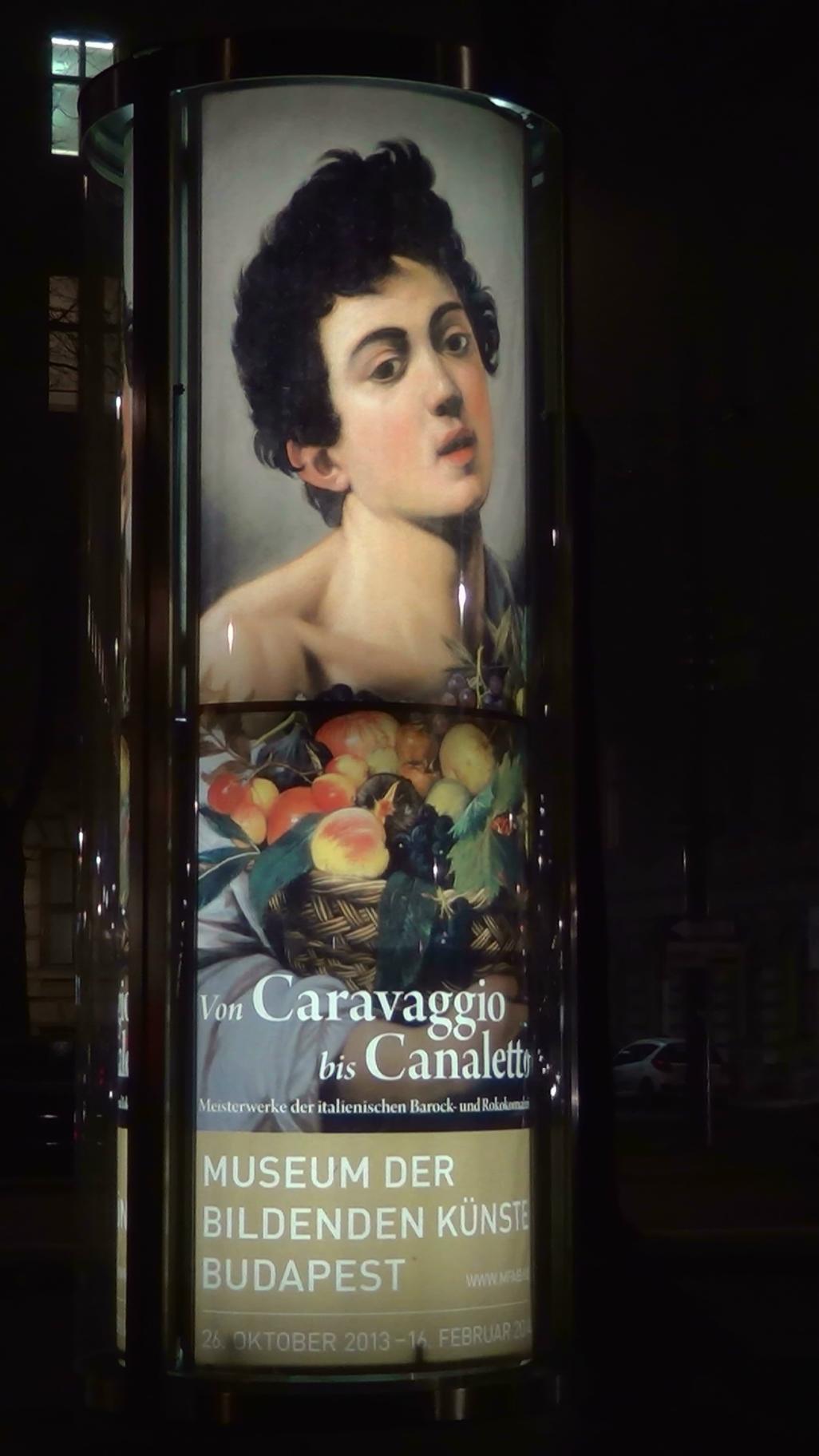 A Litfass column (Columns with announcements inside. Rotating core, illuminated by night) on Ring Street.