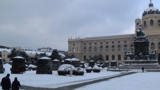 Maria Theresien Platz with the Empress Maria Theresia Statue. Maria Theresien Platz is the park between the Museum of Arts and the Museum of Natural History. The park is dominated by an enormous monument with Empress Maria Theresia on top, surrounded by her comrades-in-arms, her Generals and advisers (in the lower section). This is a panorama from the right to the left. UNESCO World Cultural Heritage Site.